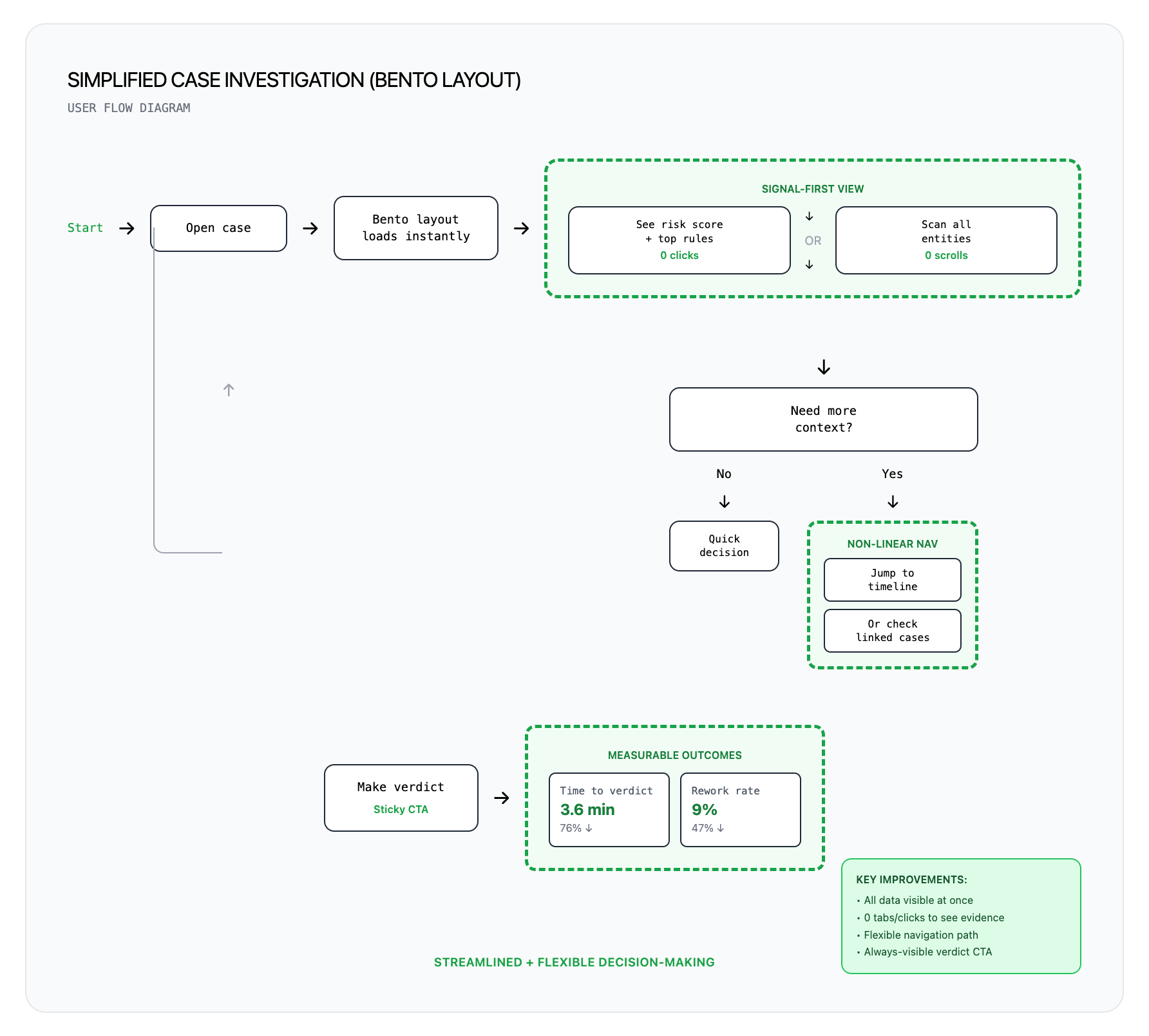 - Applied bento layout + signal-first IA to Transaction Monitoring (launched Q3 2025)