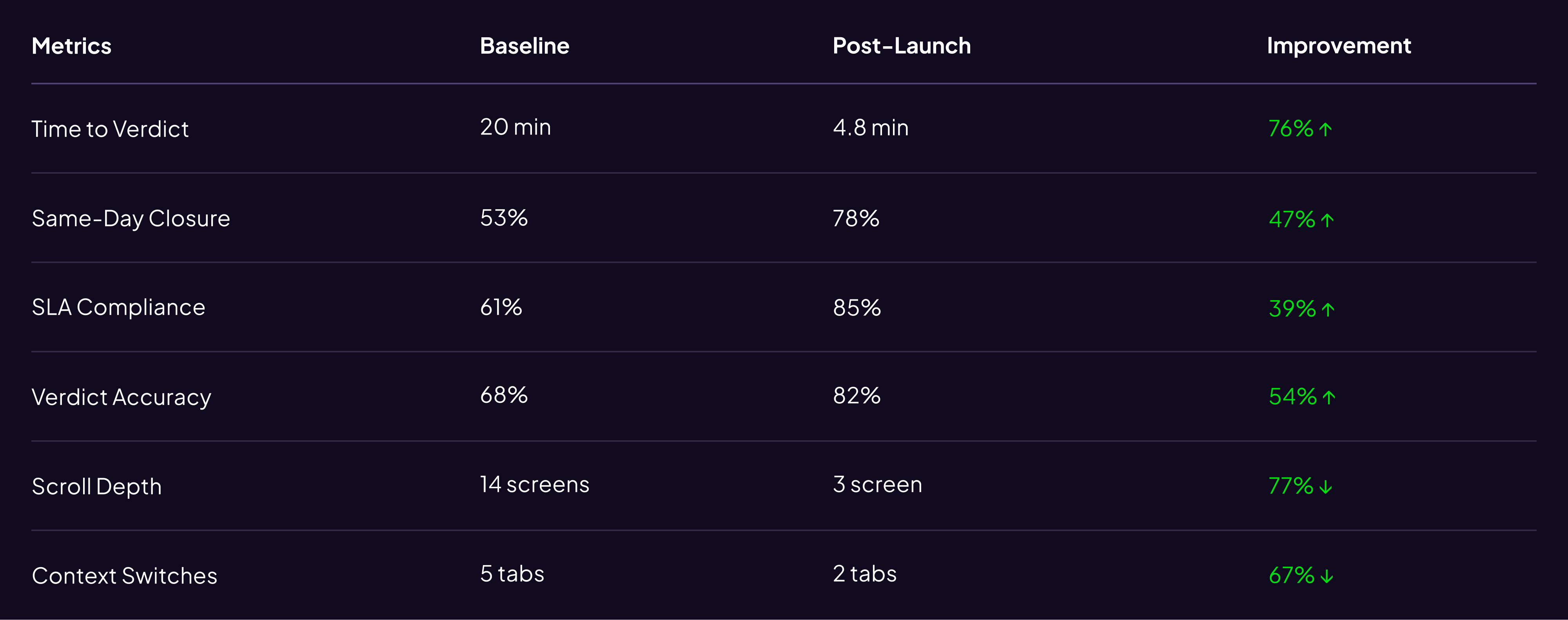 I set verdict accuracy as success metric, but lacked reliable post-launch measurement.